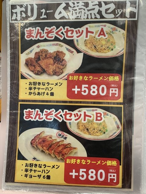 まんぞくセットB(好きなラーメン、半チャーハン、ギョーザ6個)