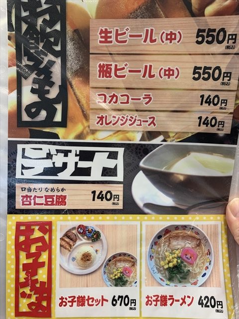 一品料理、ご飯もの、飲み物、デザート、お持ち帰り。うれしいお子様メニューもあります。