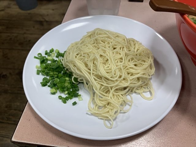 ・魚市場の人たちはとても気が急いていて、ラーメンを注文してから出すまでのスピードを求めた。このため、当初中細麺だった麺は、ゆで時間を短くするためにどんどん細く変化。麺が細いと伸びやすいため、1度に提供する量を少なくし、麺のお代わりをする替え玉というシステムが生まれた。