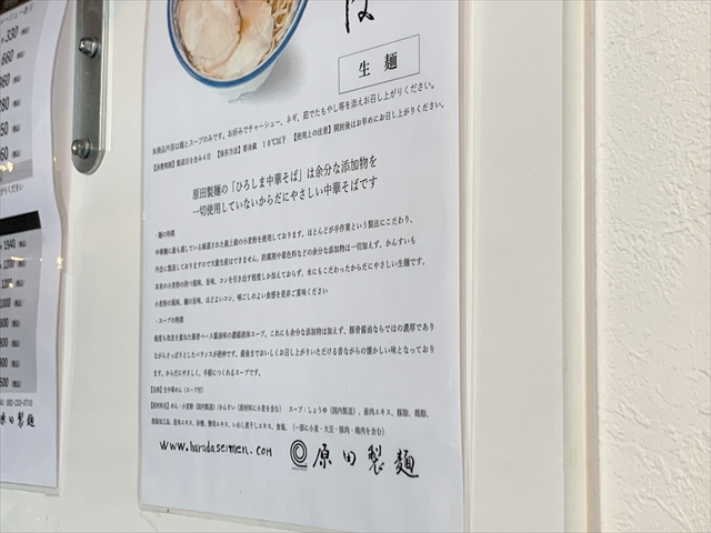 厨房壁面には、原田製麺のチラシが貼ってあります。新華園をリスペクトしていることがわかります。